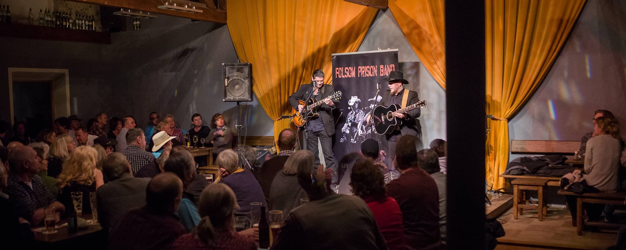 Beide Musiker sind seit Jahren zusammen unterwegs, unter anderem standen Sie schon als Support der Bellamy Brothers auf der Bühne und haben den Titelsong zum „Austrian King of Country“ aufgenommen. Ein Abend mit der Folsom Prison Band heißt tief eintauchen in eine andere Welt, in den Südwesten der USA und einer musikalischen Zeitreise zu den Wurzeln des Country, Blues und Rock`n Roll zu folgen und dabei auf gute alte Bekannte zu treffen.